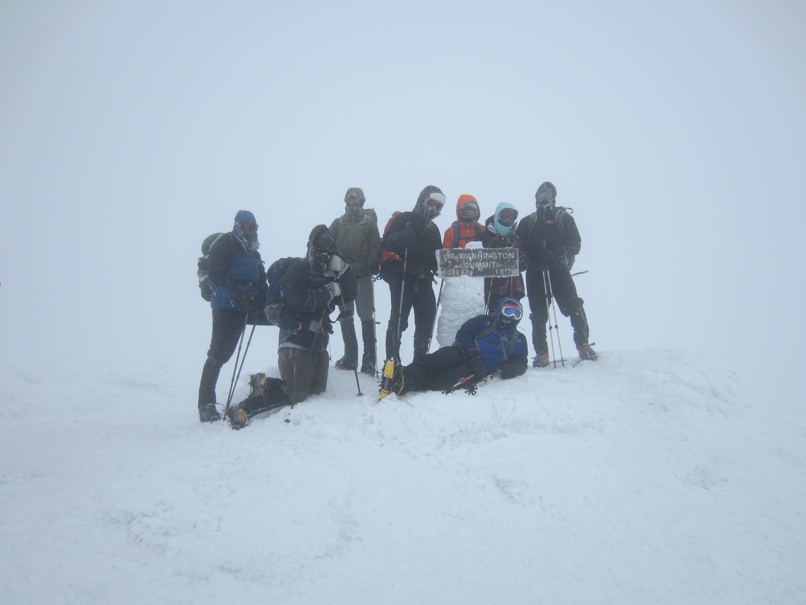 We made it to the summit, I believe at 12;30ish. So not bad. Coming up above the tree-line is something I will never forget, and those footsteps were by far the most challenging with the wind, the cold, and the unfortunately foggy goggles. The experience reminded me of diving in cold water with so much neoprene that you can’t easily move, and such limited visibility that you’re brain desperately wants you to be somewhere else. Same effect. Attempting to change my glove liners quickly (20 seconds) showed me how fast something could go wrong cause when I spilled my water and saw that it froze instantaneously I realized that I had about 10 more seconds to get gloves back on as my fingers quickly turned numb. Really numb, not numb ha ha.